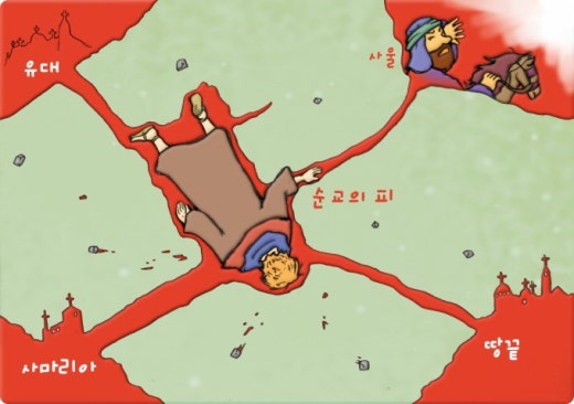 사실상 스데반은 “작은 예수‘였습니다. 역설적으로 예수님이 십자가에 죽으시며 제자들을 남기셨던 것처럼, 스데반도 죽음을 통해 사울(바울)이라는 제자를 남길 수 있었습니다. (58절)